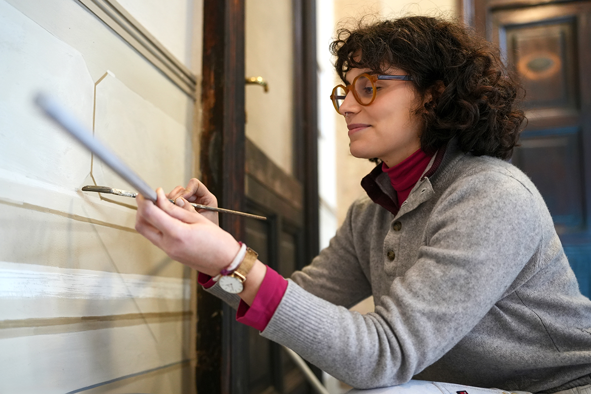 Studia all’università di beni culturali di Torino e contemporaneamente alla Scuola per Artigiani Restauratori Maria Luisa Rossi della stessa città, dove si certifica Tecnica del restauro di superfici lapidee e dell’architettura. Fin da piccola dà sfogo alla manualità con medium colorati e, dopo lo studio universitario, le prime esperienze come tecnica del restauro la ricollegano al lavoro della materia e al fascino di mantenere e ridare vita agli oggetti d’arte e alle decorazioni architettoniche. Grazie al progetto “Una Scuola, un Lavoro” della Fondazione Cologni, a partire da gennaio 2026 prosegue presso Solaria Opere il suo viaggio nel mondo del restauro con un tirocinio di sei mesi. Guidata dal maestro Fabio Garnero esplora il mondo della gnomonica, e gli orologi solari sulle facciate degli edifici smettono di essere muti ornamenti. Scopre le capacità degli antichi di conoscere il cielo, le ciclicità del tempo e dell’anno, quando ancora il digitale non poteva essere immaginato.
