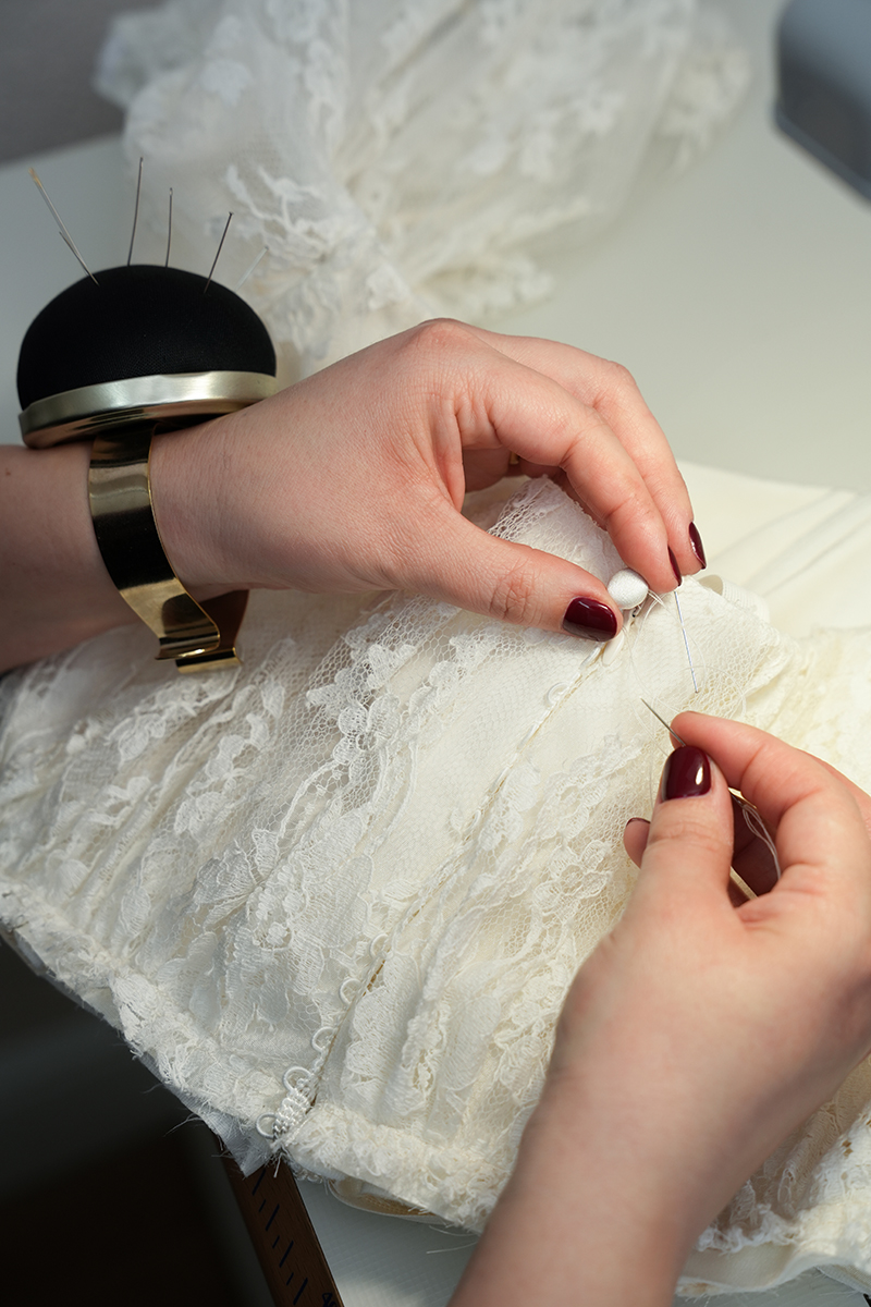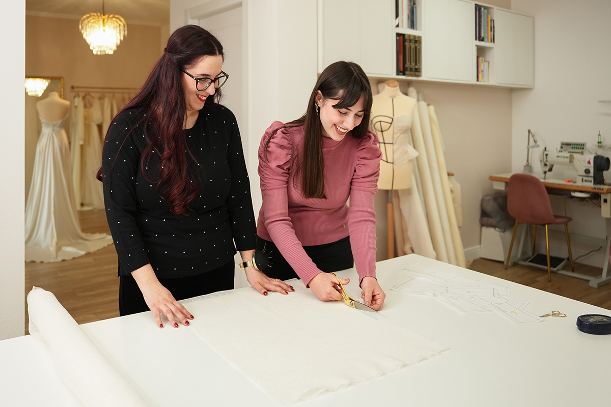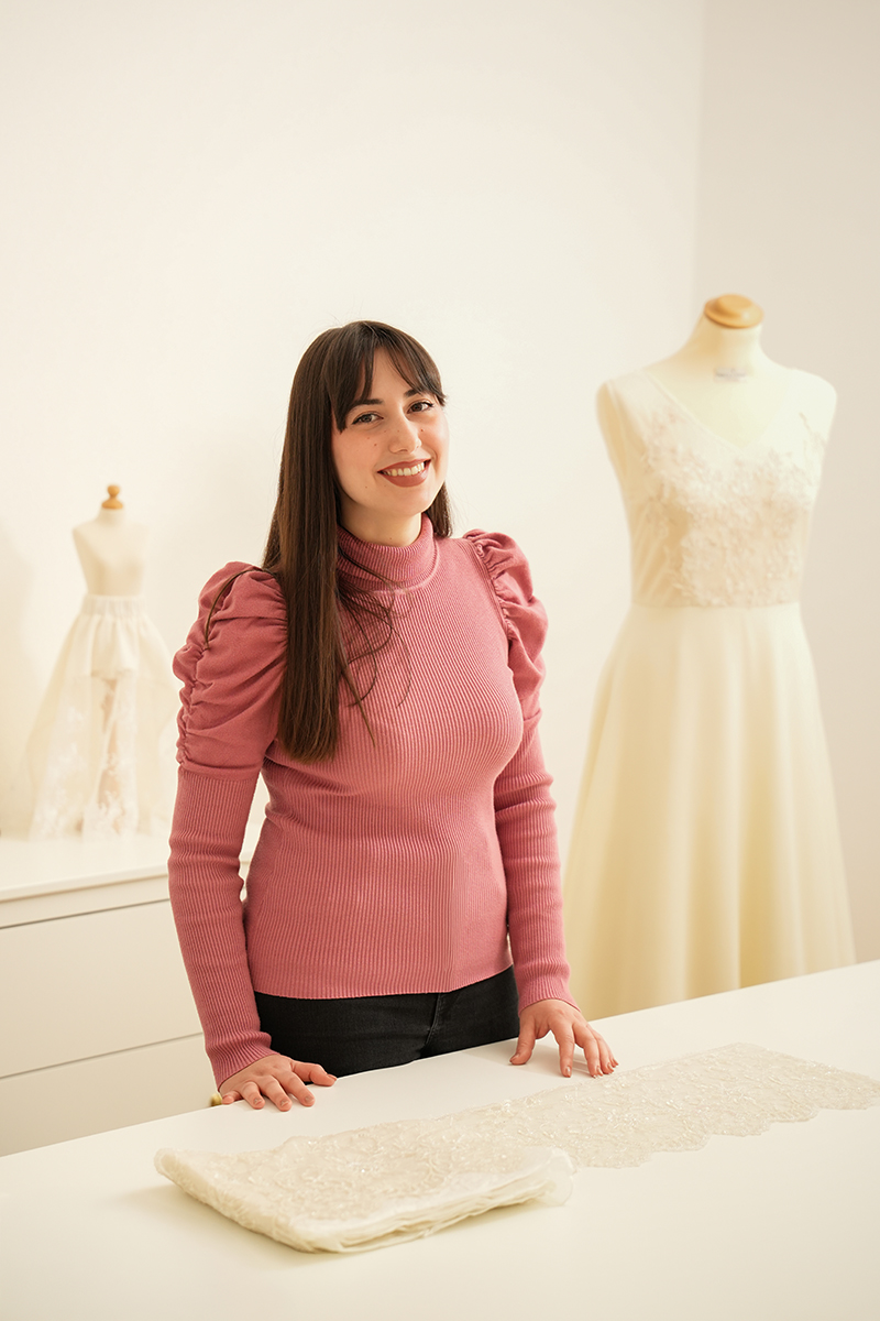 Flavia racconta: “Questo tirocinio mi sta insegnando quanto sia importante unire creatività e metodo. Mi piace vedere un’idea trasformarsi in un abito vero e proprio, e spero che questa esperienza mi dia la sicurezza e le competenze per costruire il mio futuro in questo mondo”.